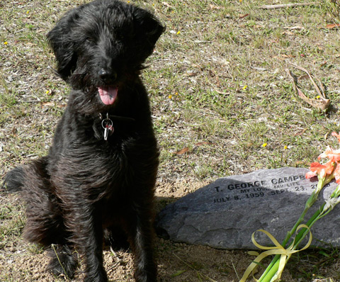 Howard Campbell first told me the story of the real dog Pavlov at Zandunga, a restaurant in Oaxaca, Mexico. Pavlov is a bright and fun-loving dog, who learned a lot through positive psychological reinforcement. Pavlov had belonged to his late brother. The photo above shows Pavlov at George Campbell’s grave. Howard asked me to illustrate a children’s book he wrote about the shaggy hound. Below is how I drew Pavlov based on that one photo.