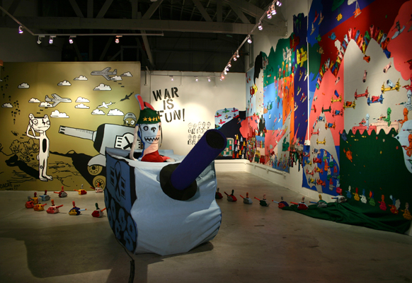 “I do love Red Grooms and recently bought a copy of his book that is basically a retrospective of his work. After I finished my undergraduate degree in Birmingham, Alabama, I was asked if I would be interested in being an assistant to the Chicago-based artist, DZINE. That was probably one of the best things I could have done for myself. I basically helped him paint this huge painting in the gallery but what was so important was that it was my first real exposure to a “real” artist- who just happens to be blowing up lately. Chris Burden is also someone I looked at lately- I love the way that he seems to just go for it and push the limits. But the first influential artist that really opened my eyes and made me see that you can really push the boundaries is Jonathon Borofsky- in graduate school I found an article that talked about an installation that he put up in LA in the mid-80’s and it was a room that was just crammed with stuff- it may have been his retrospective, I’m not sure, but it made me see that ‘hey, I can do that as well’. Oh, and of course- Chuck Jones- probably the very first artist I looked at who drew my favorite cartoon character- Bugs Bunny.”