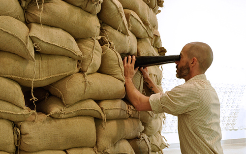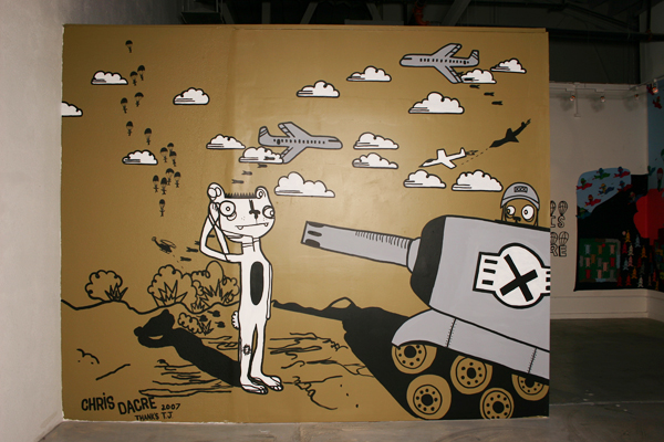 Chris Dacre (rhymes with baker) is the winner of the 2011 Sharadin Gallery Installation Residency at Kutztown University. The residency, which comes with a $10,000 budget, attracted over 150 proposals from all corners of the world. I visited Dacre’s website to learn about his artwork. Most recently living in New Mexico, he has a BFA in Graphic Design and MFA in Printmaking. An Air Force veteran, his recent work is about how we think about (or avoid thinking about) war. His upcoming Kutztown project is called “War is Fun.” I emailed him a few questions.