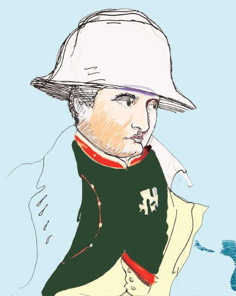 Got a Bamboo Fun Tablet by Wacom ($199) and have been experimenting with drawing and painting in Photoshop CS5. For this portrait of Napoleon, I began with a single reference image, an old print I bought in England over twenty years ago.