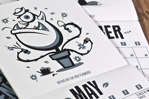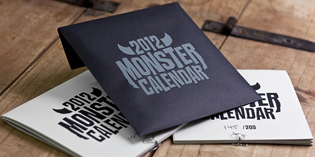 The Monster Calendar includes illustrations by Sock Monkee, Chris Sandlin. I got an artist’s proof, but the calendars available at 55his.com are part of a limited silkscreened edition. Illustrators will want to check out the 55hi’s blog to see the entire process of putting this work of art together.