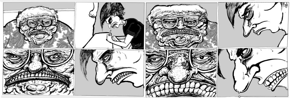 Very rarely you’ll find someone who makes great comics from the first panel they ever draw. That certainly isn’t me. I’ve drawn thousands of pages over the last few years. I am never as excited with what I’ve just finished as what I’m going to work on next. The first year working on Grixly I put out twelve issues. I was motivated primarily by getting better, winning the approval of my peers and escaping all the naive maudlin tortured artist nonsense I was letting myself get wrapped up in at the time by drawing all the fucking time.