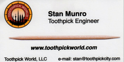 Stan is clearly a storyteller, a visionary, an educator, and a business man with a plan. Toothpick World, LLC, is a traveling exhibit corporation. I asked Stan if he thought of himself as an artist. “Artist? –No,” he said, “I call myself a toothpick engineer,” and he handed me his card.