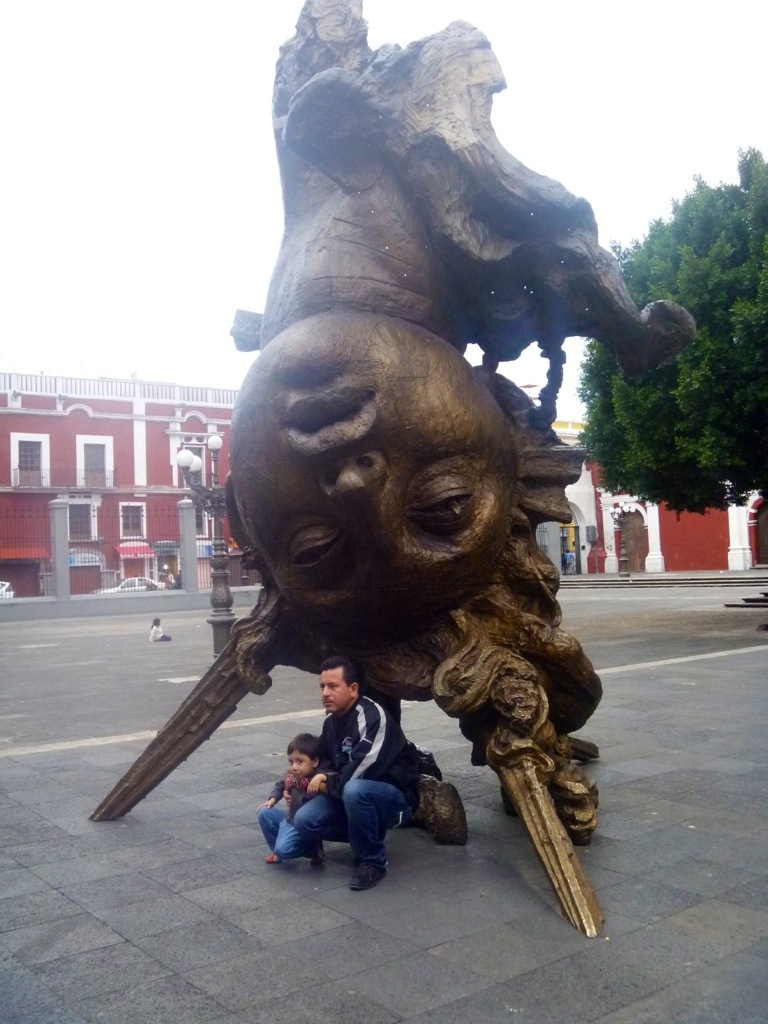 Finally, to show one more reason to visit Puebla. Pictured below is one of three massive bronzes by the Mexican sculptor, Javier Marin. This one is called Female Head, Chiapas. It stands in the plaza San Geronimo, and is enormously popular with visitors.