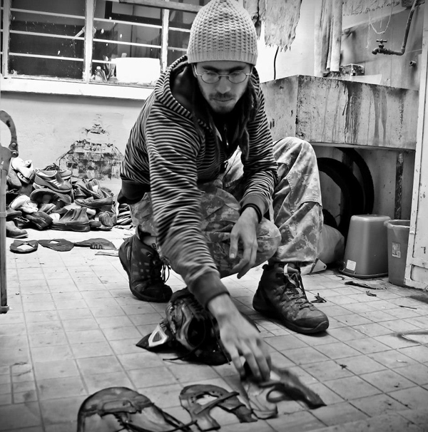 Sebastian preparing shoes to print. Photo by Tirso Pérez