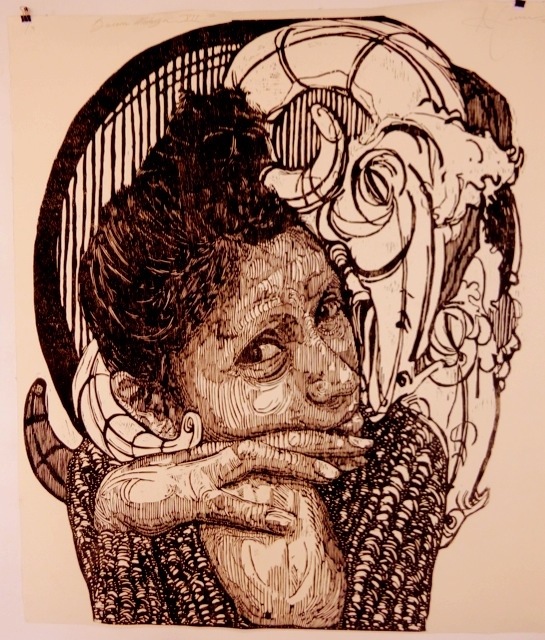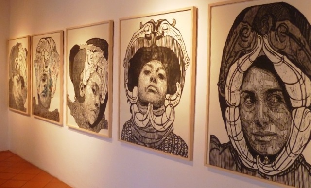 Today, Irving Herrera is an artist on a roll. He illustrated the current issue (Oct. 2013) of the magazine, El Jolgorio. It is a special Oaxaca Poetry issue and can be downloaded here. Irving recently had a roomful of his prints exhibited at MACO, The Museo del Arte Comtemporaneo de Oaxaca. He has twice won ‘Young Creative Artist’ grants from the State of Oaxaca to complete the series of oversized portraits he calls, ‘Senora Matanzas.’ I don’t know how to translate this, maybe,’ Killer Women?’