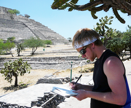 Corey Reifinger sketching a pyramid in Queretaro, Mexico