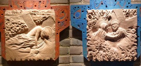 3. Jesus falls the first time, and 4. Jesus meets his mother.