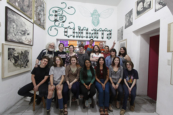 Previous Image Next Image classpic Edith Chavez, center front, and Alan Altamarino, center back with KU students at Taller Chicharra.