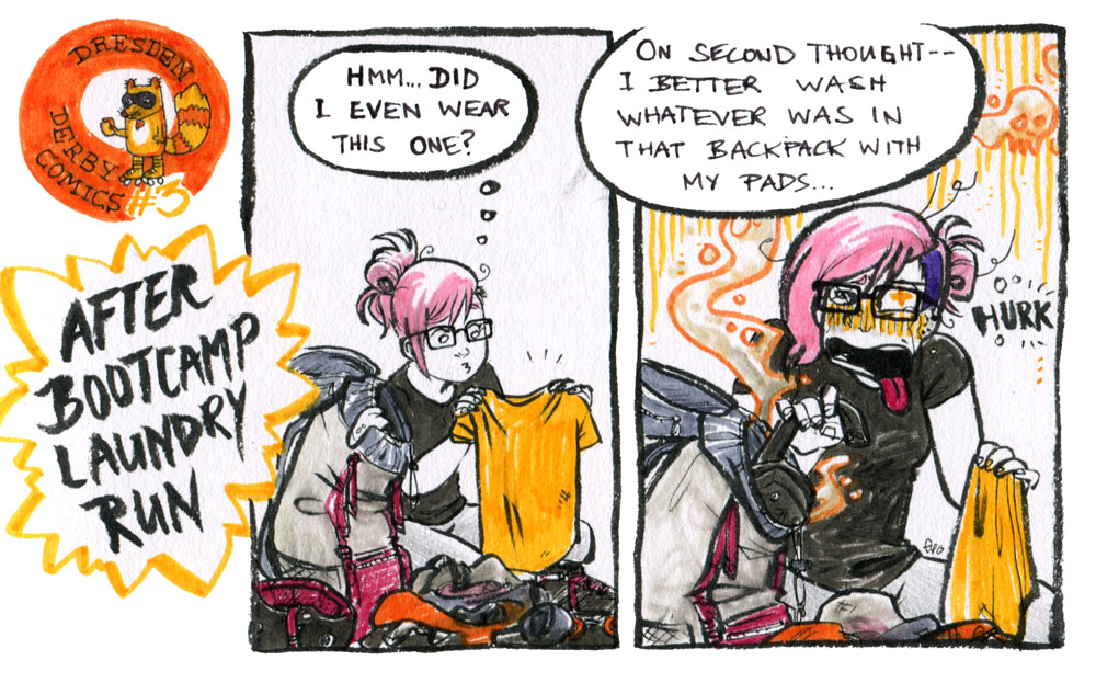 We have tentatively named our derby comics project and tumblr: Wrist Stink Ink! If you’re asking why, you probably don’t play roller derby – or date anybody who does.