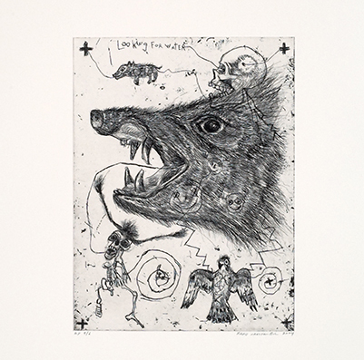 I especially liked the expressionistic etchings by Brad Kahlhamer. They seem quite original and energetic. For me they evoke animal totems, handmade maps, and sketchbook art.