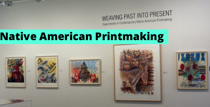 There is always something interesting there. One of the two current exhibitions is “Weaving Past into Present: Experiments in Contemporary Native American Printmaking.” There are over 40 works by artists who identify as Native Americans: Mohawk, Seneca, Navajo, Flathead/Salish, Chiricahua Apache, Cree, and more.