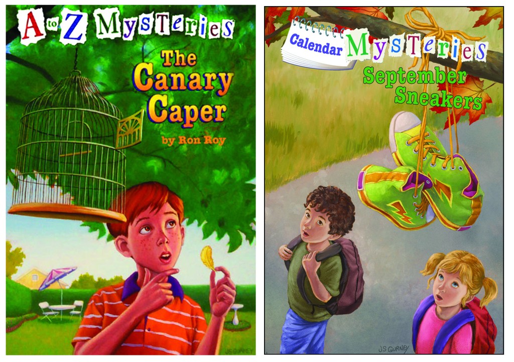 “150!,” replied John Steven Gurney. He quickly explained these were series chapter books which entailed a color cover and a handful of interior black and white illustrations. Even so, that’s a lot of books! The A to Z Mysteries, Bailey School Kids, and The Calendar Mysteries series kept him busy in the 1990’s. He often completed a book a month.