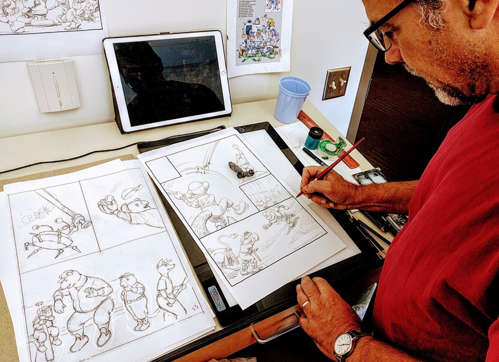 Publisher’s Weekly noted, “Gurney’s love of the game is apparent.” School Library Journal wrote, “Panels illustrate where players are as they steal bases and the action speeds up. The overall effect is a very clear picture of the game.” The success of Fuzzy Baseball led to Ninja Baseball Blast and the book he is making now, Fuzzy Baseball #3, will be released in May, 2020.