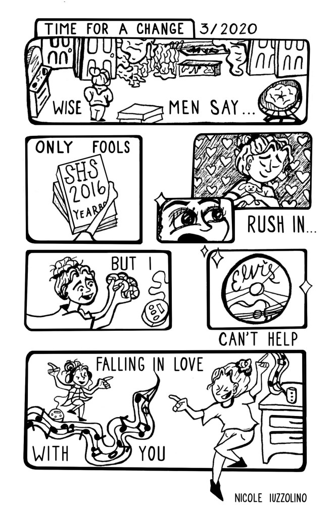 Nicole Iuzzolino, below, is back home in central New Jersey and found solace in her favorite Elvis tune. Nicole says her passions include illustration and jamming out to Elvis Presley songs.