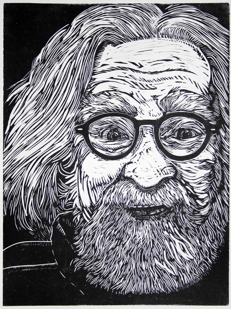 Self portrait, linoleum cut, 2012.