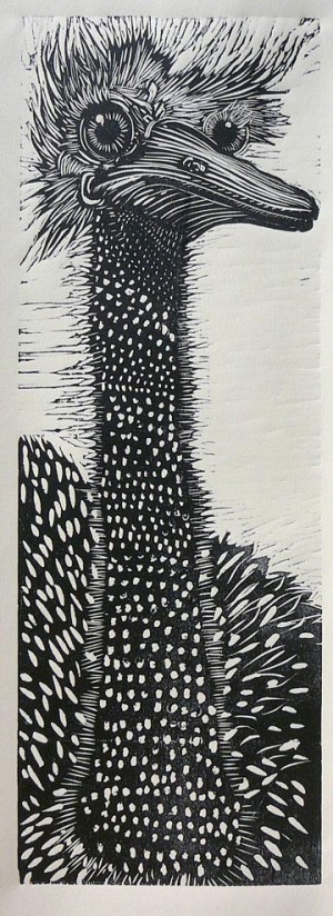 Ostrich, woodblock print, © 2011KMc